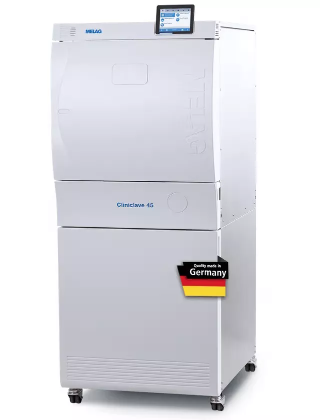 Besonders schnelle Betriebszeiten, hohe Beladungskapazität und zuverlässige Sterilisiersicherheit sind die wichtigsten Anforderungen für einen Gross-Autoklav für Praxis und Klinik. Durch die im Cliniclave 45 zum Einsatz kommende patentierte Technologie einer doppelwandigen Sterilisierkammer und die dadurch möglichen schnellen Betriebszeiten wird der Cliniclave zum entscheidenden Baustein der Instrumenten-Aufbereitung.